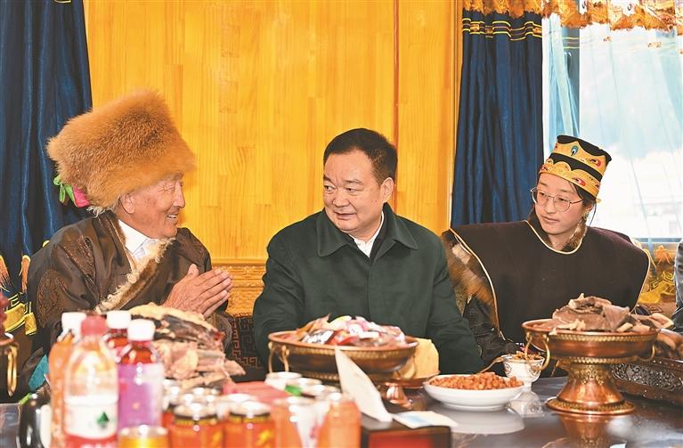 2月19日,自治区党委书记王君正前往巴宜区,看望慰问基层群众和党员干部,与各族干部群众一起欢度新年。这是王君正在鲁朗镇扎西岗村老党员、致富带头人平措家里聊家常、庆新年。本报记者 旦增西旦 摄 2月19日,自治区党委... 【详细】