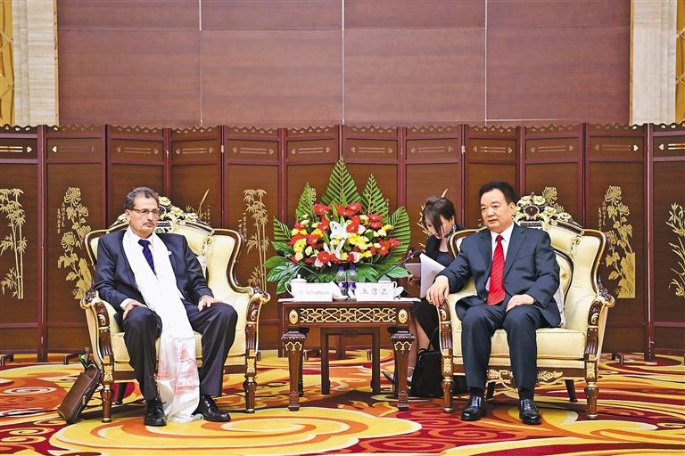 王君正代表自治区党委、政府对考察团一行表示欢迎。他说,中尼两国山水相连,自建交以来,中尼始终相互尊重、平等相待,坚持互利双赢、共同发展,树立了睦邻友好的典范。2019年10月,习近平主席对尼泊尔进行国事访问,今年3月,习近平主席向尼泊尔新任总统鲍德尔致贺电,强调要弘扬中尼传统友好,巩固两国政治互信,高质量共建“一带一路”,拓展人文交流合作,为中尼合作开辟了新篇章、带来了新机遇。