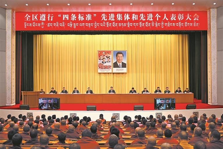 12月4日,全区遵行“四条标准”先进集体和先进个人表彰大会在拉萨举行。自治区党委书记王君正出席并讲话,强调要深入学习贯彻党的二十届四中全会精神,贯彻落实习近平总书记关于宗教工作、西藏工作的重要指示和新时代党的治藏方略,贯彻落实习近平总书记视察西藏时的重要讲话精神,按照自治区党委十届九次全会部署要求,突出分类指导,强化典型引领,积极推进藏传佛教中国化,努力为建设社会主义现代化新西藏凝聚力量。