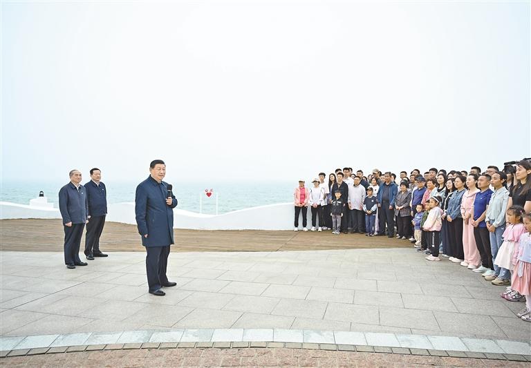 随后,习近平考察了日照市阳光海岸绿道。近年来,日照市对沿海裸露场地及岸线破损处进行生态修复,建成约28公里的阳光海岸绿道,为市民和游客提供了运动休闲好去处。习近平听取绿道整体建设情况介绍,察看修复治理后的海岸线生态环境,了解当地升级文旅产业、提升人民生活品质的做法和成效,并不时同市民和游客亲切交流。他指出,建设绿道应市民所需,是得民心之事。推进中国式现代化,就是要让人民群众的生活越来越好。生态环境好,老百姓就多了一份实实在在的幸福感。大家要一起动手,共同建设和呵护美好家园。
