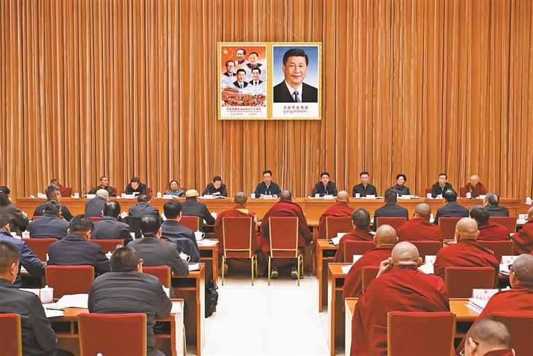 王君正指出,党的十八大以来,以习近平同志为核心的党中央高度重视宗教工作,习近平总书记创造性提出了一系列新思想新观点新论断,科学回答了新形势下宗教工作的一系列重大理论和实践问题。今年8月,习近平总书记视察西藏时作出重要指示,强调要进一步铸牢中华民族共同体意识、推进中华民族共同体建设,要按照系统推进我国宗教中国化、加强宗教事务治理法治化的要求,引导藏传佛教与社会主义社会相适应,为我们进一步做好工作指明了前进方向、提供了根本遵循。全区各级各部门要深入贯彻落实习近平总书记重要指示精神,全面贯彻党的宗教工作基本方针,铸牢中华民族共同体意识、推进中华民族共同体建设,持续深入推进藏传佛教中国化,加强宗教事务治理法治化,积极引导藏传佛教与社会主义社会相适应,确保西藏宗教工作始终沿着正确方向前进。
