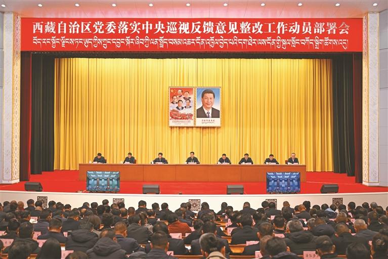 12月15日,自治区党委落实中央巡视反馈意见整改工作动员部署会在拉萨召开,自治区党委书记王君正出席并讲话。本报记者 旦增西旦 摄