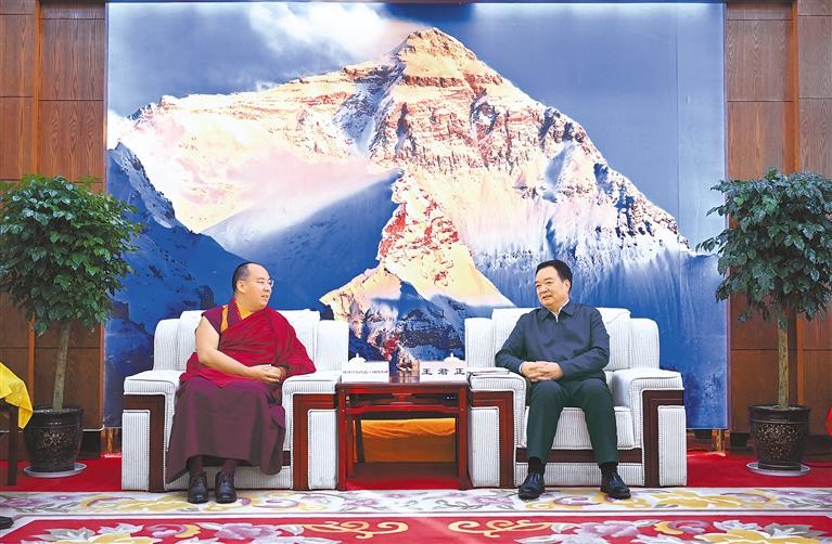近日,自治区党委书记王君正在日喀则市调研宗教工作。调研中,王君正会见了班禅额尔德尼·确吉杰布。 本报记者 旦增西旦 摄