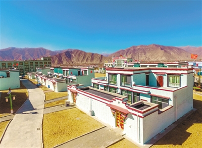 在西藏日喀则市利用高原装配式建筑技术试点建设的精准扶贫房(3月29日摄)。